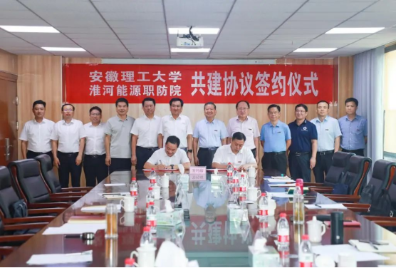 9月10日下午,安徽理工大学与淮河能源控股集团职业病防治院签署共建协议。中国工程院院士、安徽理工大学校长、我会会长袁亮出席签约仪式并讲话,淮河能源控股集团党委副书记、总经理韩家章主持签约仪式。安徽理工大学党委常委、副校长鲁超,淮南矿业集团副总经理、经营管理部部长徐维彬,淮河能源控股集团健康产业集团党委书记、董事长汪先彬出席会议。